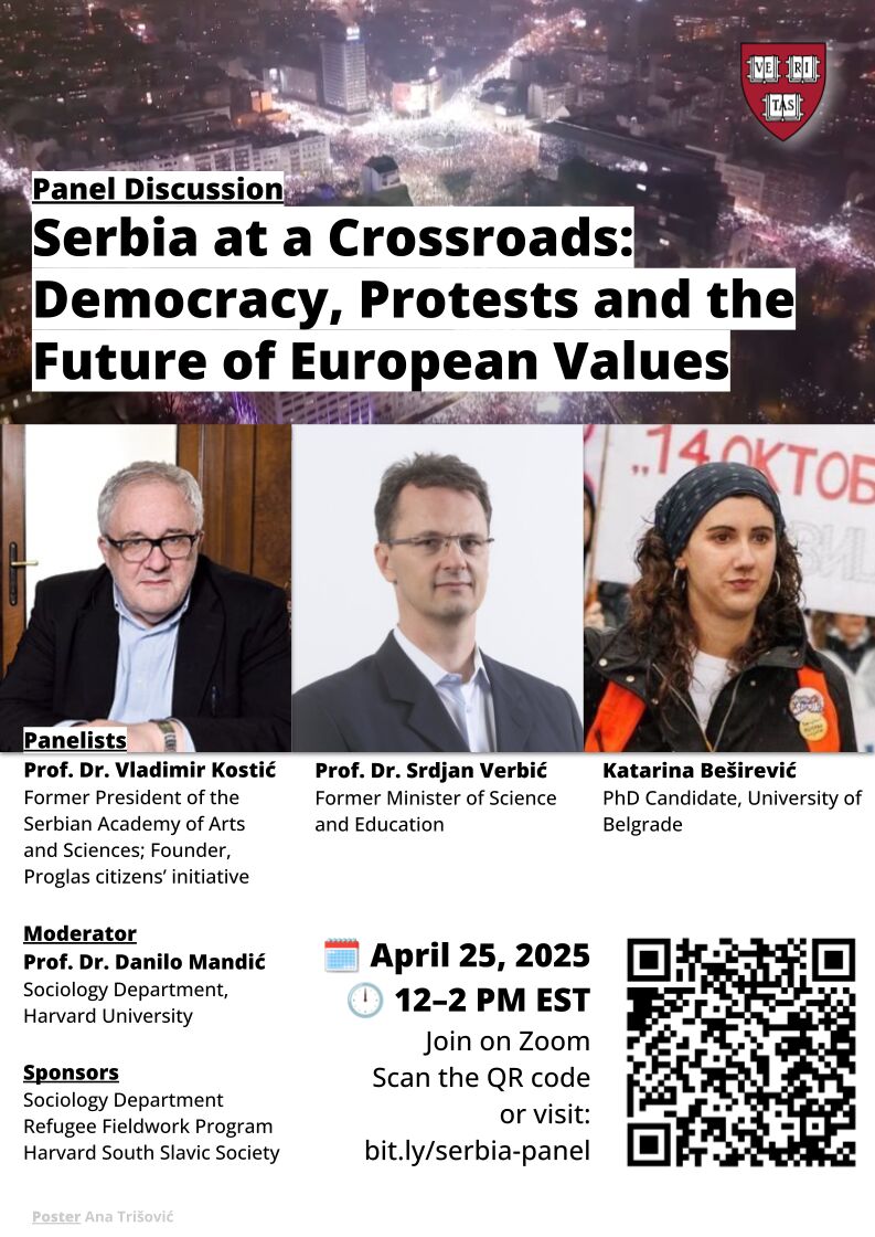 Our associate Katarina Besirevic took part in a debate Serbia at a Crossroads: Democracy, Protests and the Future of European Values organized by Harvard’s sociology department, dedicated to student protests. Hosted by Professor Danilo Mandic, this zoom panel was addressing various issues of crossroads Serbia is at. In front of an audience of over 300 people, alongside with Ivanka Pavlovc, i former rector of Belgrade University, Professor Srdjan Verbic, former Minister of Education, she reflected on students demands and on new opportunities of democratization of the country opened by their protests. Recording is available here.
