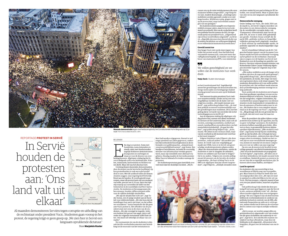 Luka Filipovic gave an extensive interview to Dutch press about student protest in Serbia. Srdjan Cvetkovic, who initiated support of scholars to the students also talked about history of protests (in the motion, while protesting :))
