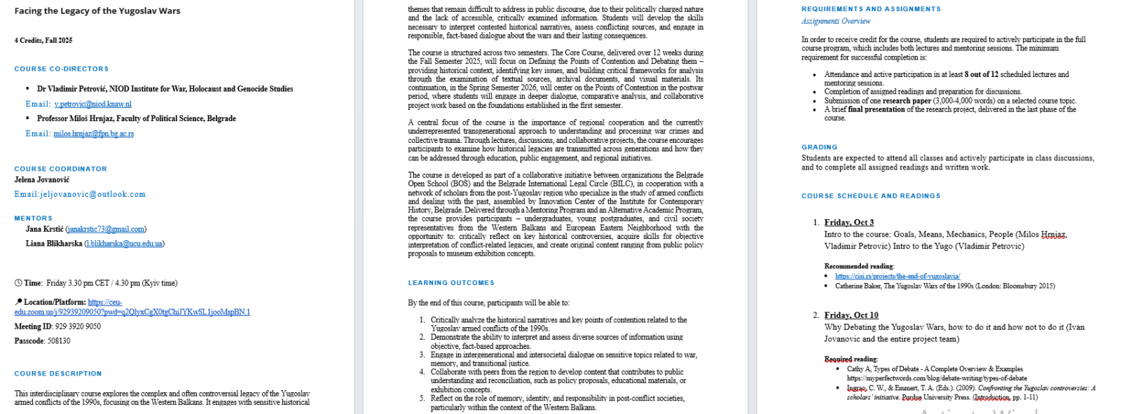 Deepening its collaboration with Central European University’s Invisible University for Ukraine, CISI connected Belgrade Open School and UNDP to sponsor and execute a course named Facing the Legacy of the Yugoslav Wars. Students from Ukraine, as well as from the Balkans will attend both lectures and thematic workshops created to familiarize them with the wartime events their traces in the current post-Yugoslav space, which are only too visible even after the three decades from the conflict.